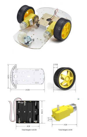 Robotic Smart Car Chassis kit with 2WD 3 wheel and two Gear Motors and Battery kit with accessories Yellow